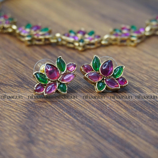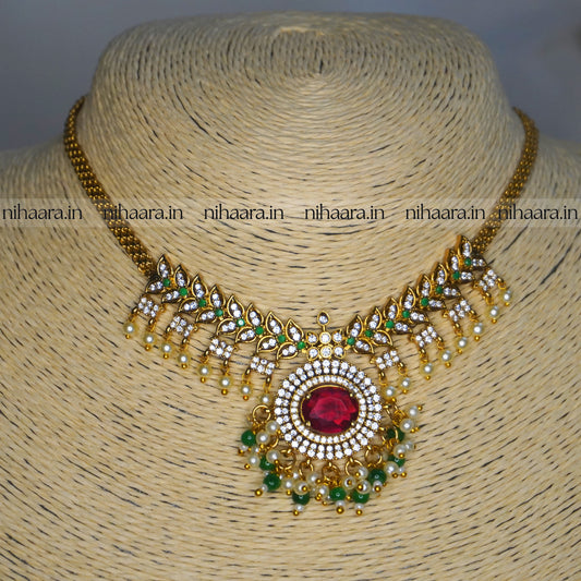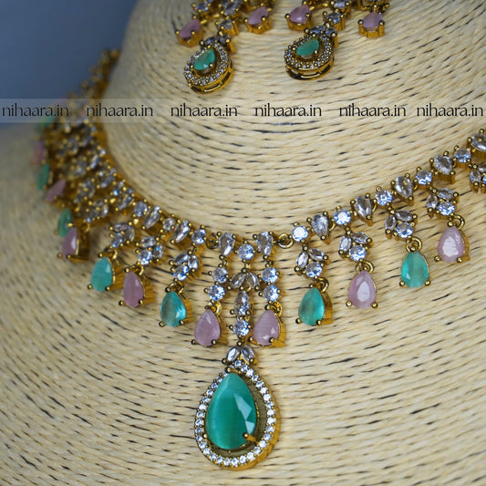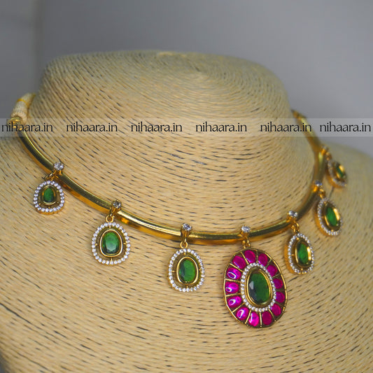 Premium Gold AD Raga Necklace Green & Magenta NA809