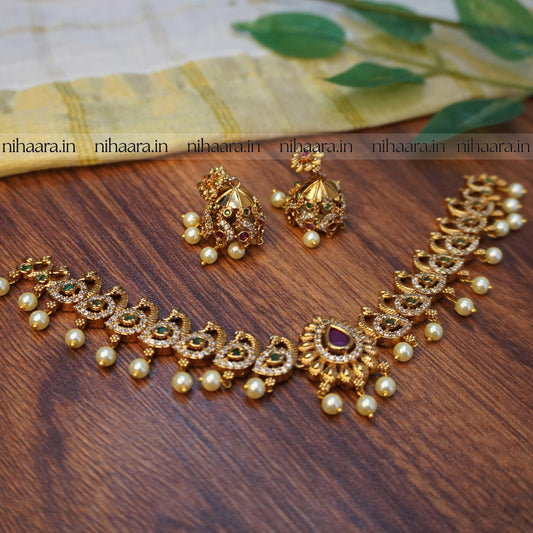 Premium AD Antique Gold Peacock Necklace Set NA827