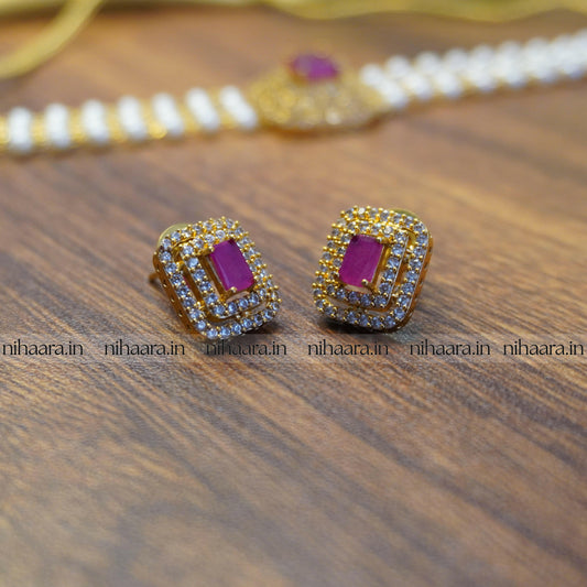 Premium Gold AD Stones Sundari Necklace Set Red NA828