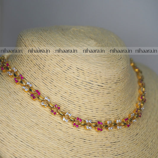 Premium Gold AD Stones Vishu Necklace Set Red NA843