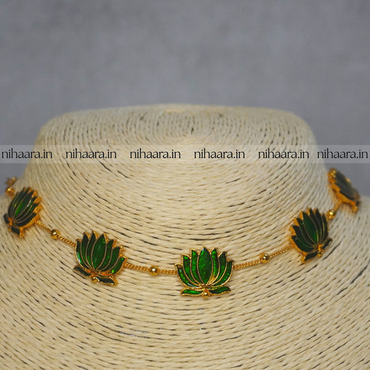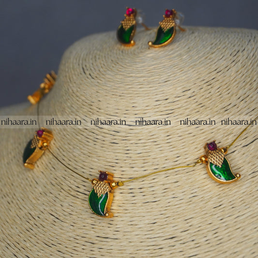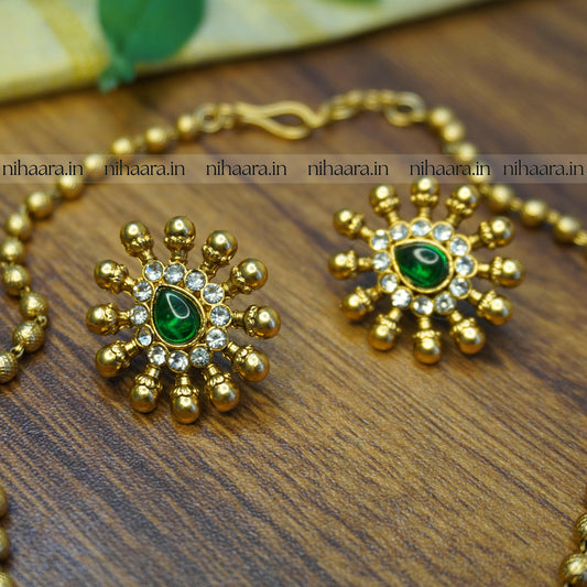 Budget Gold Thaamara Necklace Set - Green NA836