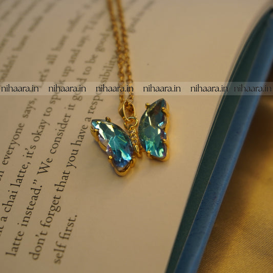 Anti-Tarnish Butterfly Necklace - Aquamarine Blue NA205