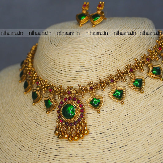 Taruni Golden Choker Set - Red & Green NA739