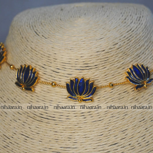 Budget Gold Thaamara Necklace Set - Dark Blue NA837